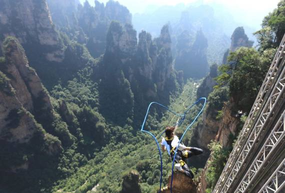 張家界,是湖南一個著名的風(fēng)景區(qū),一座天然的森林公園。黃石寨、天子山、金鞭溪等勝境,是令游人心馳神往之地。在我們出發(fā)之初,心就早已高高飛揚,五個多小時的顛簸終于把我們載到了目的地,導(dǎo)游是一個年輕的女孩子,一見面就放開歌喉唱了首當(dāng)?shù)赝良易宓母柚{,歌聲婉轉(zhuǎn)動聽,一下子讓我們領(lǐng)略到了鄉(xiāng)村
